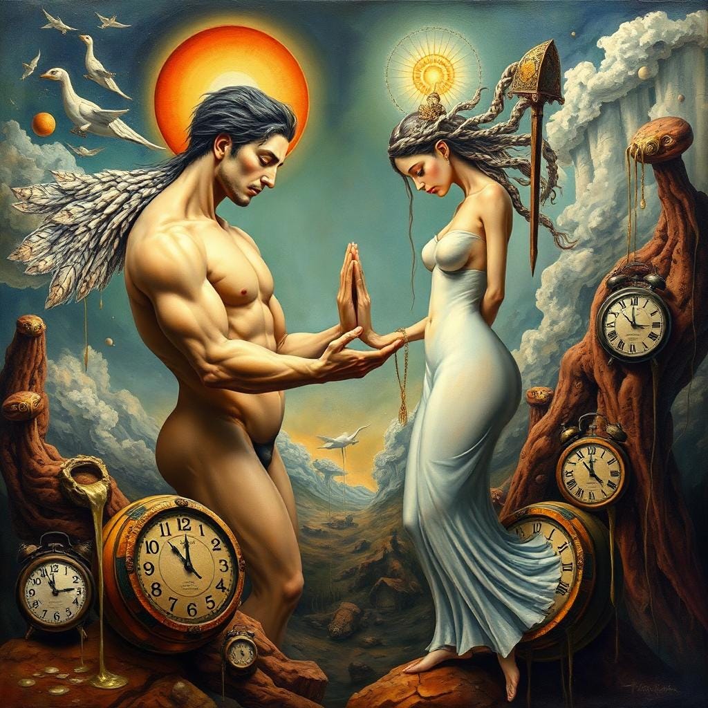 🎼The piano starts with six soft notes that twinkling as one steady key deepens building drama, the third repetition ques Love's sweet hum to begin in a soft breathy vibrato that fill the space around each note with a mesmerizing vibration that gentle holds each twinkly note in place as they flow with mystery creating their own galaxy that shiver down the spine. The ether combination introduces Echo's poetic male voice with wonder… His falsetto is captivating as he soles the first lines with a crisp effortless flow, the strings sway to his accompaniment mid verse as the imagery of each word drips a sweet tension that splits the piano notes into twelve and they echo soft and deep with the vocal fry of his voice crackling with adoration into the pre-course. Echo’s voice builds to an emotional timbre as Love’s breathy vibrato reverb ebb and flows naturally together they echo a lovely etherealness alone with the strings creating a gentle romantic melody that enfolds with beautiful melodic textures, as the Celestas delicately sparkles through to the final chorus. Love’s voice brakes from its vibrato into a harmonious belted last course with an eternal power to Echo’s duet, magical their voices dance evoking a sense of serenity as the strings draw to a dramatic final hook. All wonder is drawn into the moment, as Love’s voice softens to a gentle song of loving spoken words... Their message hangs in the air as the strings fade into a soft sense of eternal completion. All instrumentation closes the love song with a lasting moment of foreverness. ~